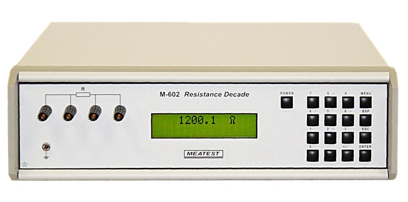 Программируемый декадный магазин сопротивлений M-602/М-602А предназначен для поверки омметров и термометров с температурными датчиками сопротивления Pt и Ni. Декадный магазин оптимально подходит для автоматизированного испытания термоэлементов, основанном на моделировании платиновых и никелевых термометров сопротивления. Благодаря хорошей точности и возможности дистанционного управления M-602 может быть использован в поверочных лабораториях, поточных линиях, сервисных центрах и отделах опытно-конструкторских работ. Для использования прибора в промышленности спроектирована версия в 19" модуле с высотой 3HE.